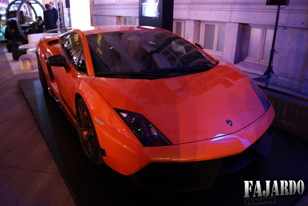 Ya al entrar inspeccioné a ver qué había por allí, por si hubiera algo interesante. Aparte de las viandas que iban a poner, había un total de 9 pedazo de coches para ver y fotografiar. Un Nissan 370z, presumiblemente el que usan para correr la FIA GT3, porque no se si los dos coches de competición que había eran reales o estaban enteros por dentro. Un Mercedes SLS AMG plateado precioso. Un Lamborghini Gallardo superleggera en naranja con líneas en negro. Un Mercedes 300SL alas de gaviota en perfecto estado. Un Ferrari 458 Italia, mucho más bonito al natural que en fotos sin duda alguna. Un Lexus IS-F de competición, pero que al pobre no le hacían ni caso. Un Nissan GT-R en negro, aunque prefiero en gris que vi y fotografié en Japón. Un Toyota FT-86 Concept, algo distinto del que pude ver en Megaweb en Tokio. Y para acabar, un Tesla Roadster Sport en azul.